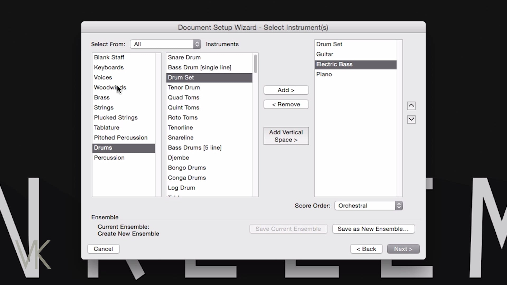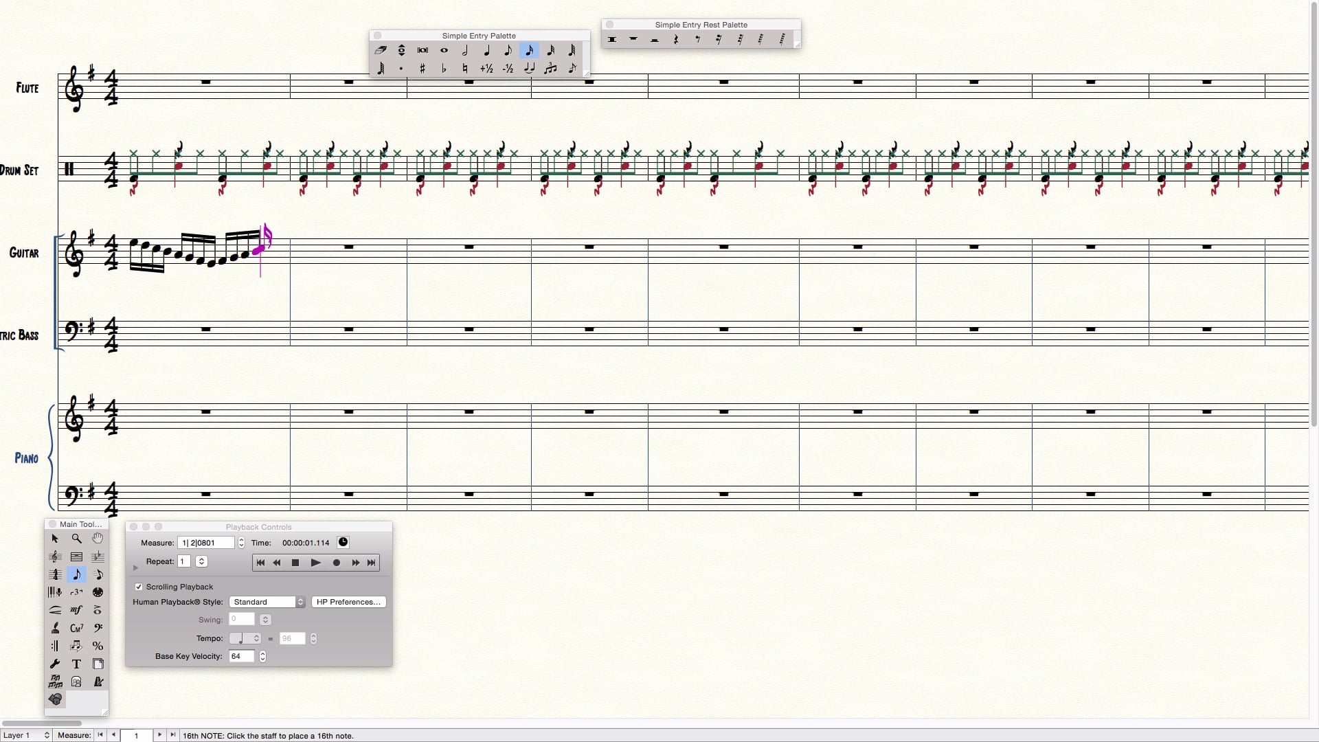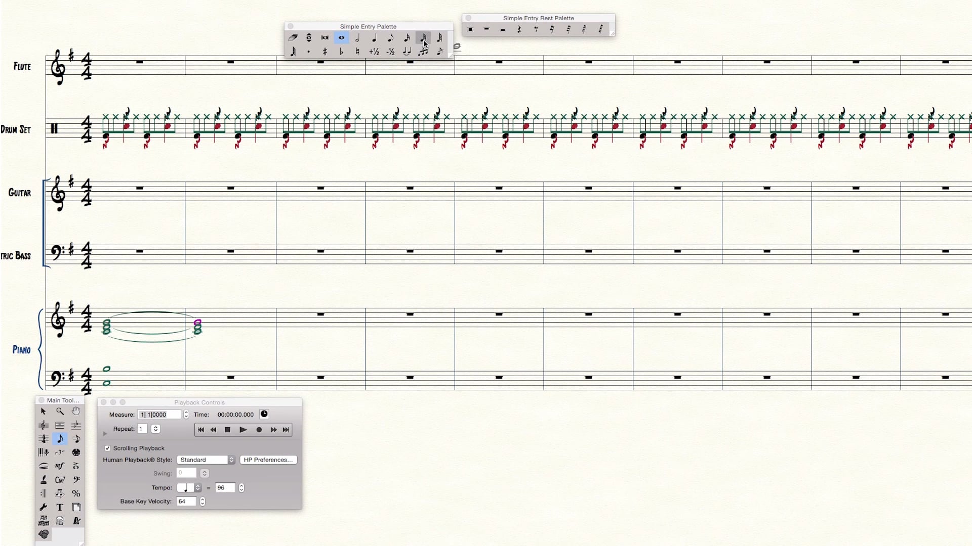 A continuación, seguiremos trabajando para escribir una composición sencilla en Finale. En la lección anterior, aprendimos a usar el software para crear una composición. Al mismo tiempo, elaboramos tanto el beat de batería, como una línea de bajo para dicha composición. En esta ocasión, nos enfocaremos en crear un acompañamiento.