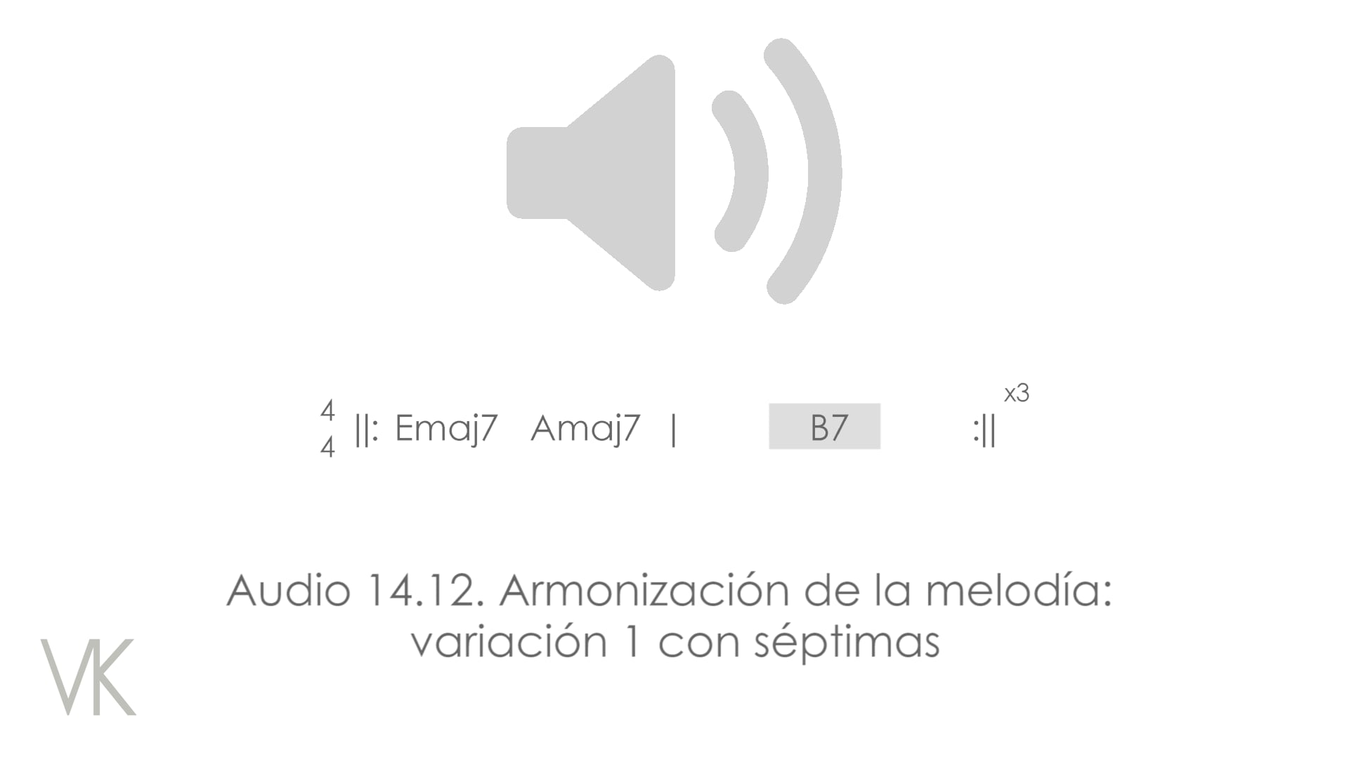 ¿Se nota la diferencia no? El acorde de quinto grado debe ser mayor para ser dominante. También podríamos sustituir el quinto grado por el séptimo. Escuchemos como suena.